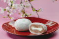 国産の桜の葉を練り込んだ風味豊かな桜あんと 生クリームを、ほんのりピンク色のお餅で包みました。