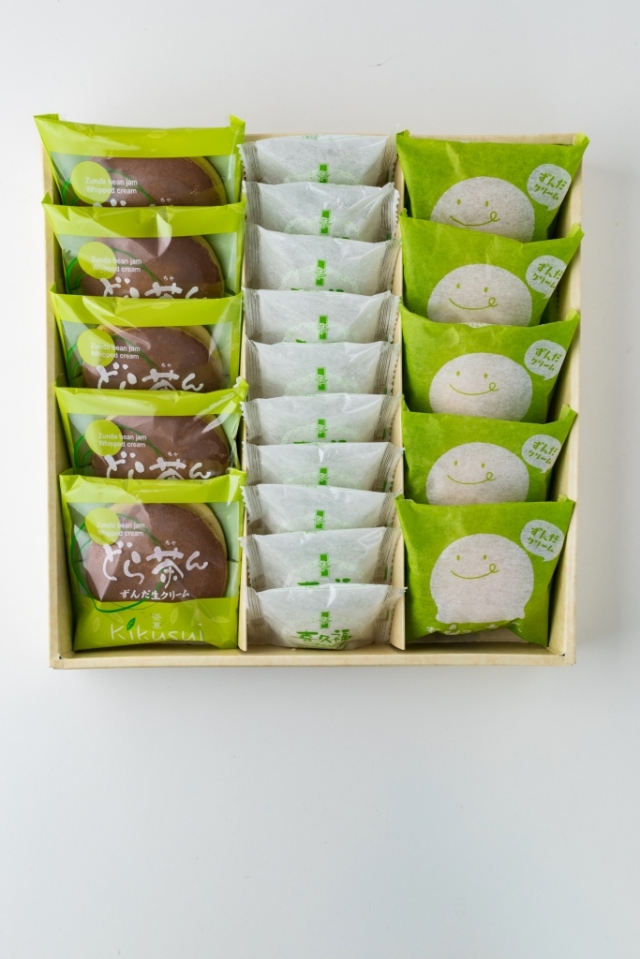【入数】喜久福(ずんだ生クリーム)10ヶ、どら茶ん(ずんだ生クリーム)5ヶ、